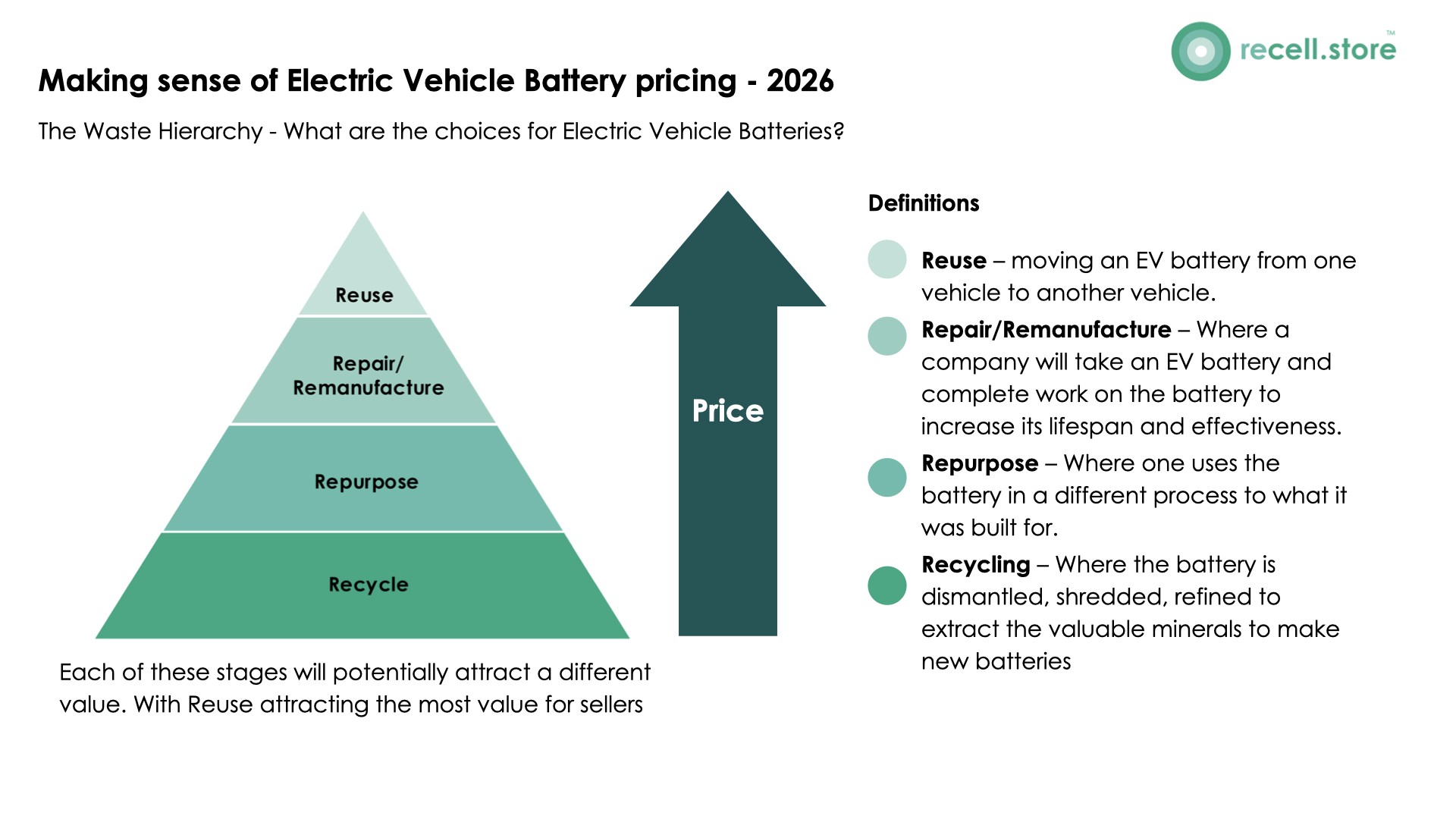 The price of an End-of-Life (EOL) EV battery (EVB) is, as with any product, influenced by production costs, competition, perceived value and, of course, market supply and demand.